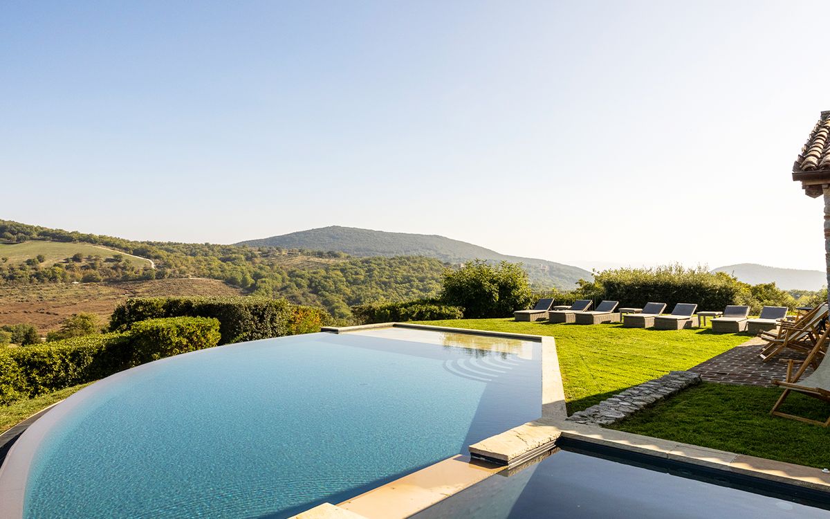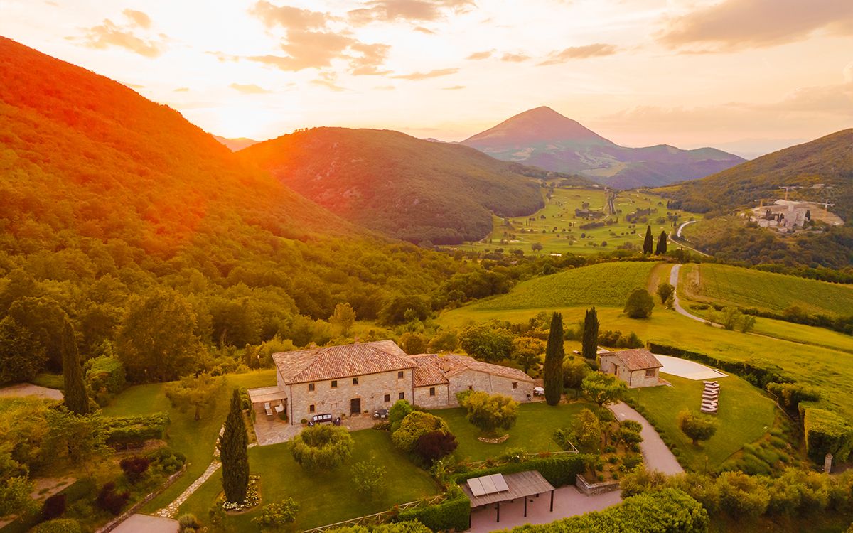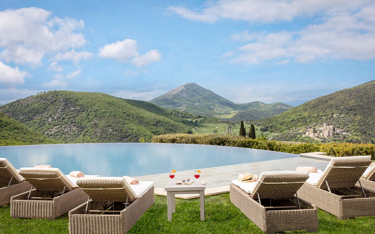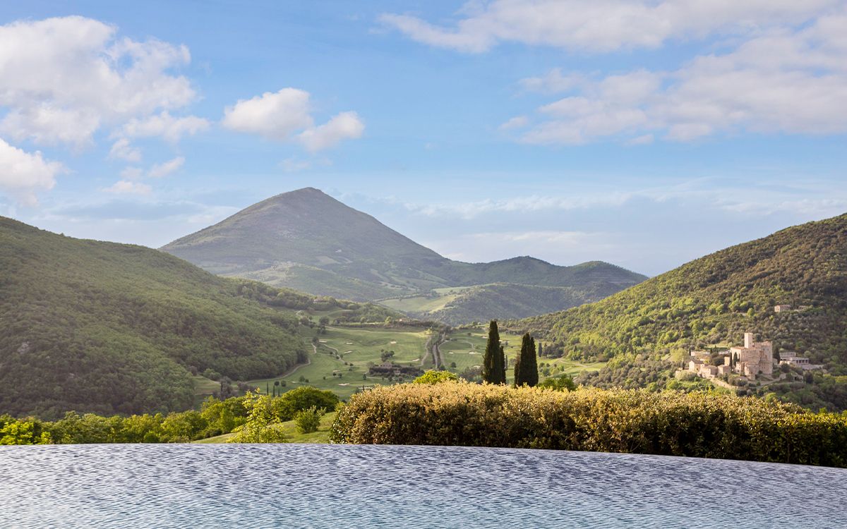 Views across the medieval castle of Antognolla and its 18-hole championship golf course