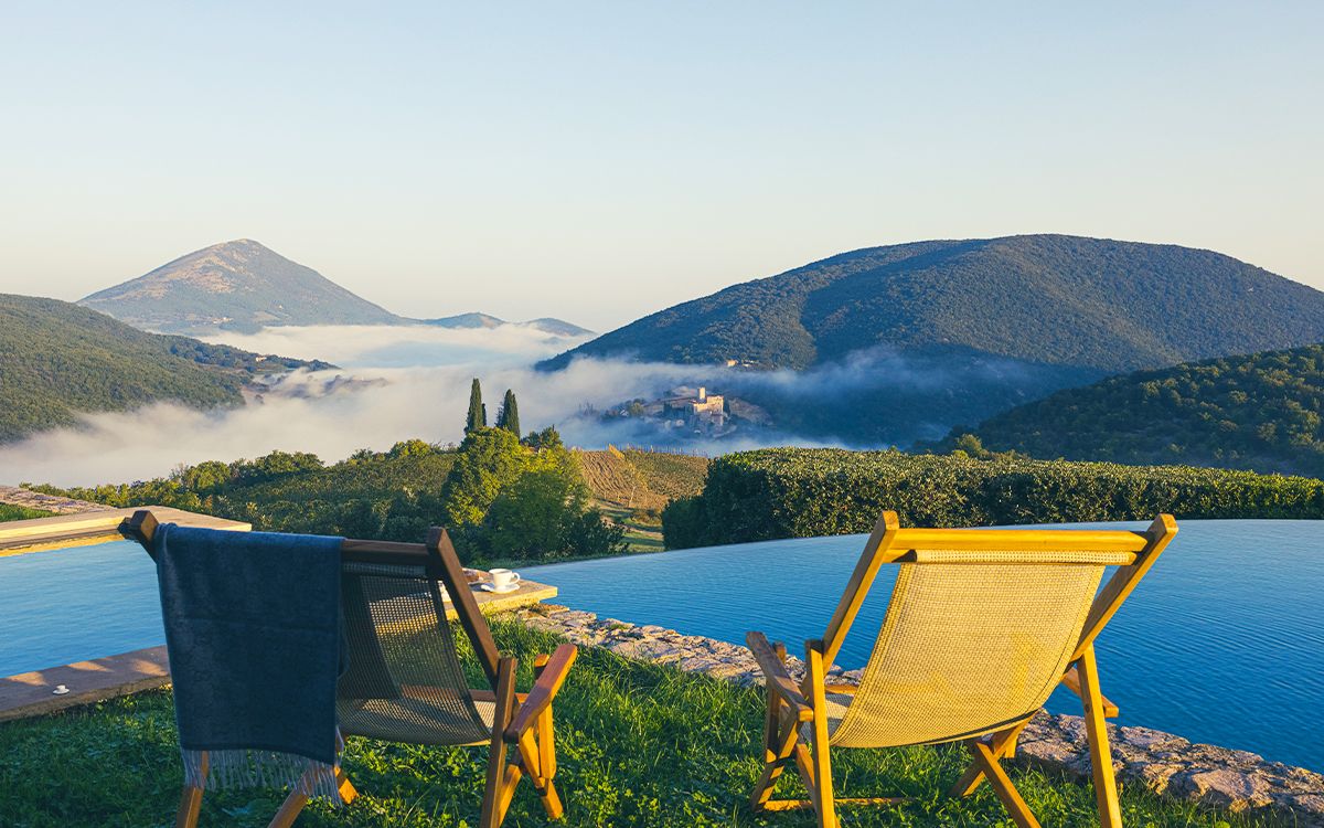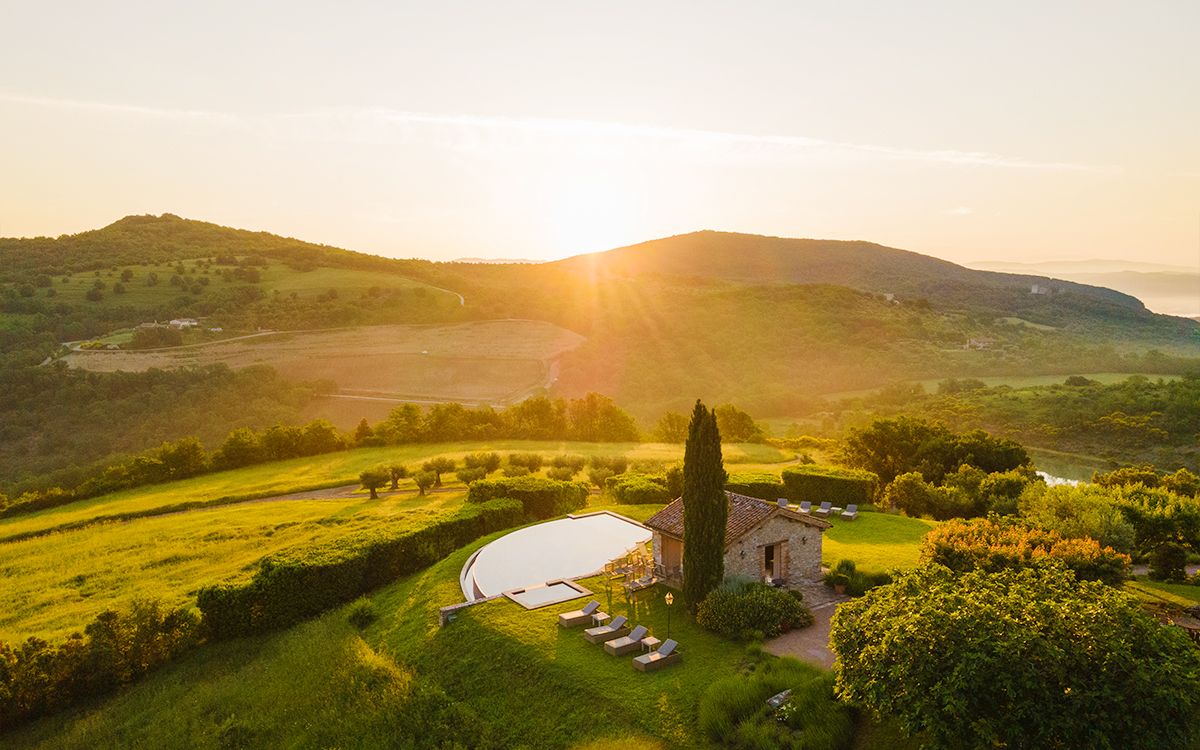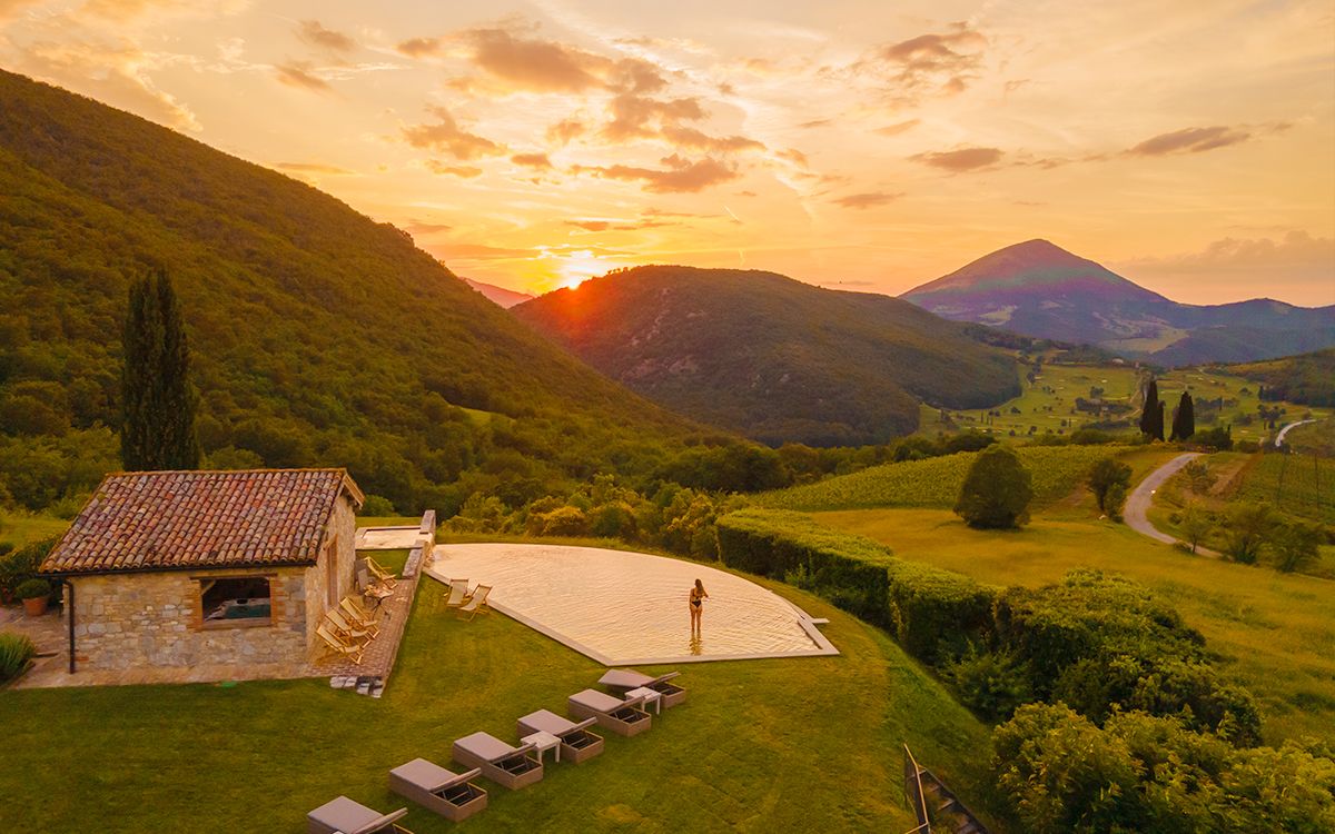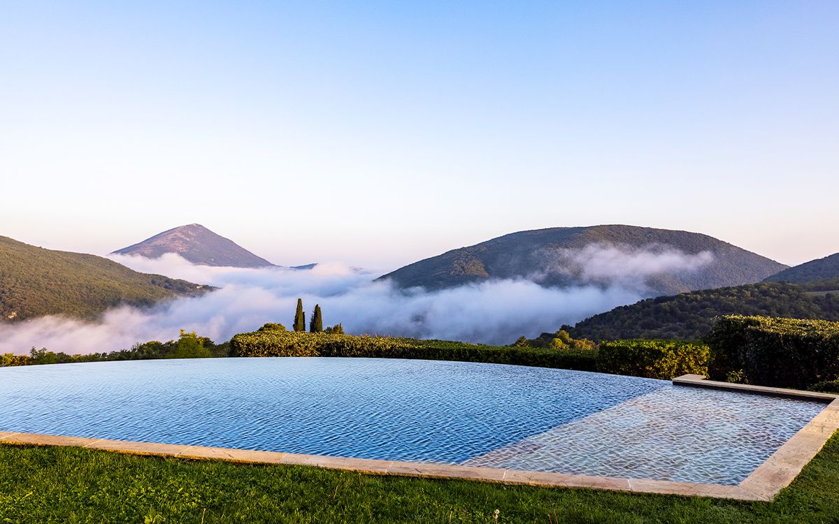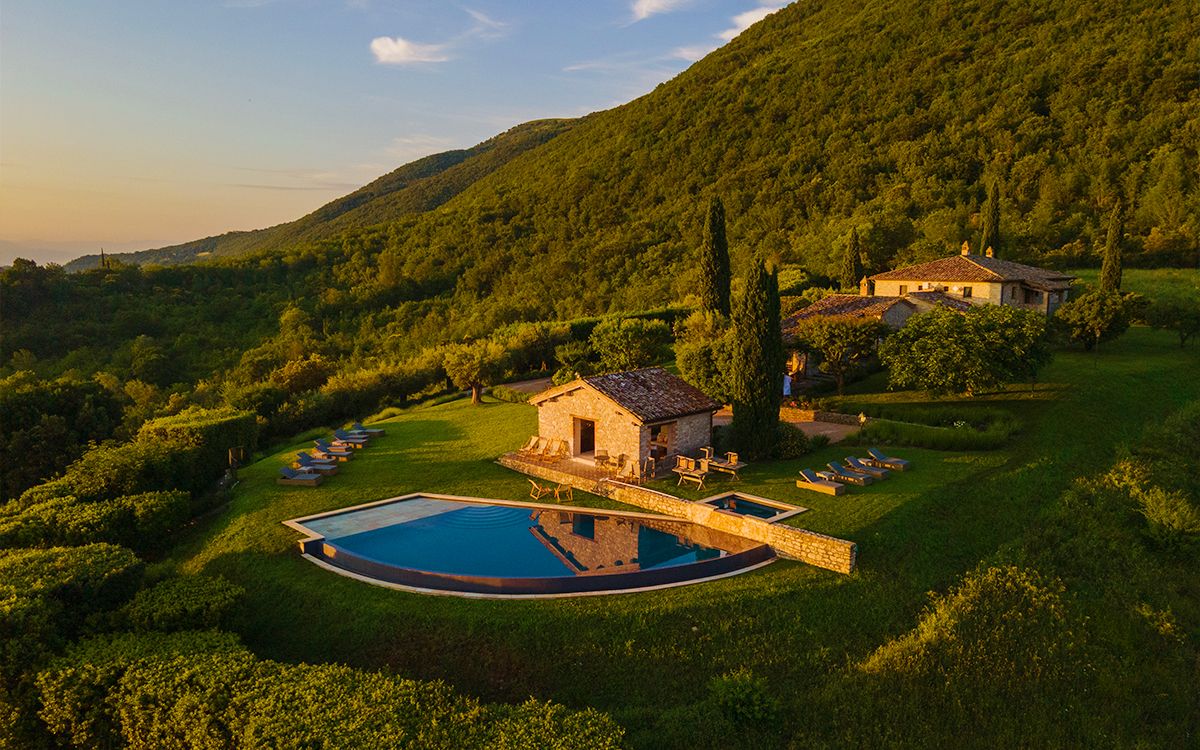 Views across the medieval castle of Antognolla and its 18-hole championship golf course